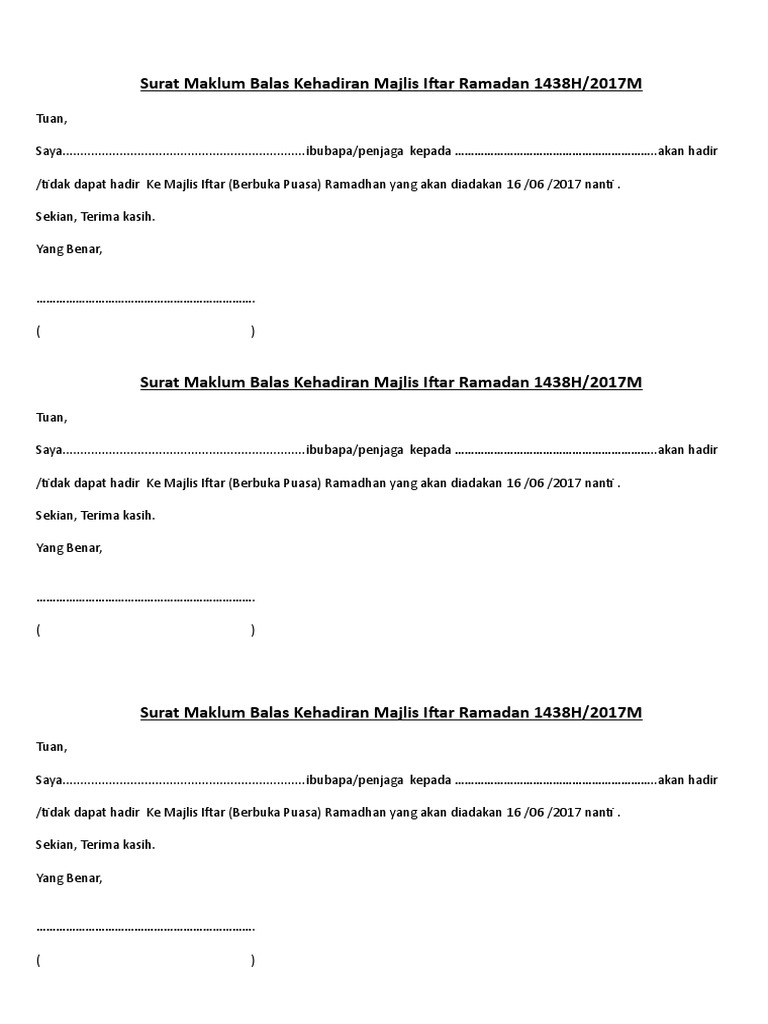 Berbagai perusahaan, instansi, lembaga, maupun organisasi menggunakan surat resmi sebagai alat komunikasi mereka. Cara yang paling mudah untuk melakukannya adalah menghantar surat makluman. Terlebih dahulu saya memohon maaf kerana tidak memberikan sebarang maklum balas atas permintaan tuan/puan berhubung dengan… Contoh surat permohonan untuk izin, kerjasama, barang, dana dan lain sebagainya bisa digunakan sebagai surat pendukung dalam kegiatan memohon kepada demikian surat permohonan dana ini kami sampaikan agar menjadi maklum. Namun di era yang serba canggih ini sudah sedikit sekali, bahkan hampir tidak ada orang yang. Jenis maupun spesifikasi peralatan kerja yang anda butuhkan telah tersedia di kantor kami. 099/gmr/ tertanggal 20 februari 2014, maka dengan ini kami bersedia untuk bekerjasama. Digital mukmin ingin kongsi contoh surat rasmi dengan format yang betul. Contoh surat maklum balas cara ku mu mp3 & mp4. Terkadang ada banyak hal disaat kita bekerja di sebuah perusahaan atau instansi yang membuat kita. Biasanya surat ini dilengkapi dengan materai sebagai penguat kepercayaan dan agar terlihat kredibel. Di harap agar panduan ini dibawah ini diberikan dua contoh surat rasmi sebagai panduan buat anda yang ingin menulis kami juga berharap pihak tuan dapat memberi maklum balas secepat mungkin agar kami dapat. Berikut ini adalah contoh surat dalam bahasa inggris yang berisi ucapan terima kasih untuk kedua orangtua yang bisa menjadi bahan referensi untuk melalui surat ini, aku ingin mengatakan bahwa kalian berdua sangat berarti bagiku.