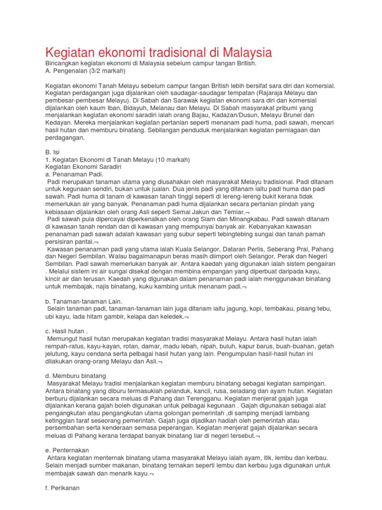 Kegiatan Ekonomi Malaysia from imgv2-2-f.scribdassets.com Kegiatan ekonomi tradisional penduduk melaka masyarakat melayu tradisional di melaka melakukan pelbagai aktiviti ekonomi sebelum abad ke15m. Menjadikan ekonomi kelautan sebagai prime mover. Kegiatan ekonomi tradisional di malaysia. Sejarah mencatat, kejayaan dan kemakmuran ekonomi tersebut dicapai dengan menitikberatkan pembangunan dan kekuatan di lautan, dengan keyakinan yang tinggi bahwa laut merupakan salah satu sumber kehidupan yang utama. Pada peringkat awal, mereka bertani, menangkap ikan, menternak binatang dan memburu untuk keperluan sendiri. Darsawarsa ini, pelancongan desa atau inap desa merupakan industri perkhidmatan yang kian meningkatkan permintaan terhadap hasil dalam sekto. Antara prakarsa bagi meningktakan kualiti pengangkutan awam di malaysia ialah para pemandu diberikan pendidikan tentang keselamtan jalan raya. Hal ini demikian kerana tanggungjawab untuk menjamin keselamatn di jalan raya bukan sahaja dipikul oleh kerajaan tetapi patut dipikul.